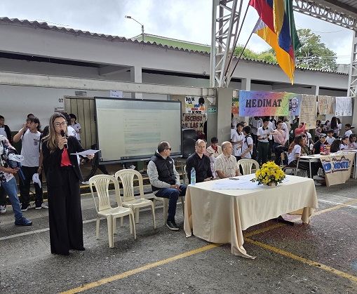 Con el acompañamiento de la docente Delia Solano, los estudiantes de grado 11 de la Institución Educativa Eudoro Granada Hendry Patiño, Neider Alayon, Enmanuel Correa y Leonardo Bello participaron de esta enriquecedora jornada estudiantil. El objetivo de este evento es el de asociar las reformas en la Educación Superior en Colombia con la garantía del derecho a la educación, la equidad y la calidad, reconociendo sus afectaciones directas en los estudiantes y universidades para justificar las normativas educativas.